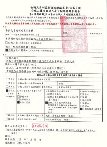 關係人身分公開(苗栗縣頭份市頭份社區發展協會-112年度流行歌曲歌唱班研習活動)
