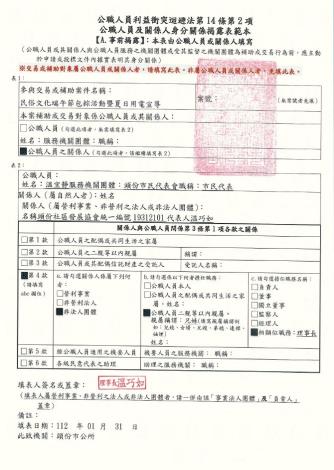關係人身分公開(苗栗縣頭份市頭份社區發展協會-112年度民俗文化端午節包粽活動暨夏日用電宣導)